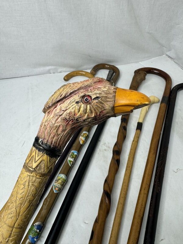Walking stick, cane various different different types of canes some canes need repair. See photos sold as is.