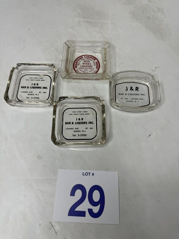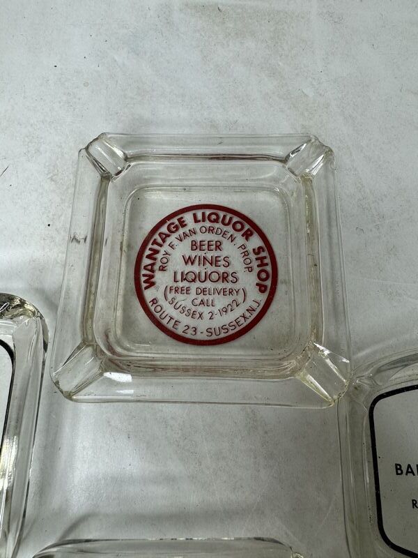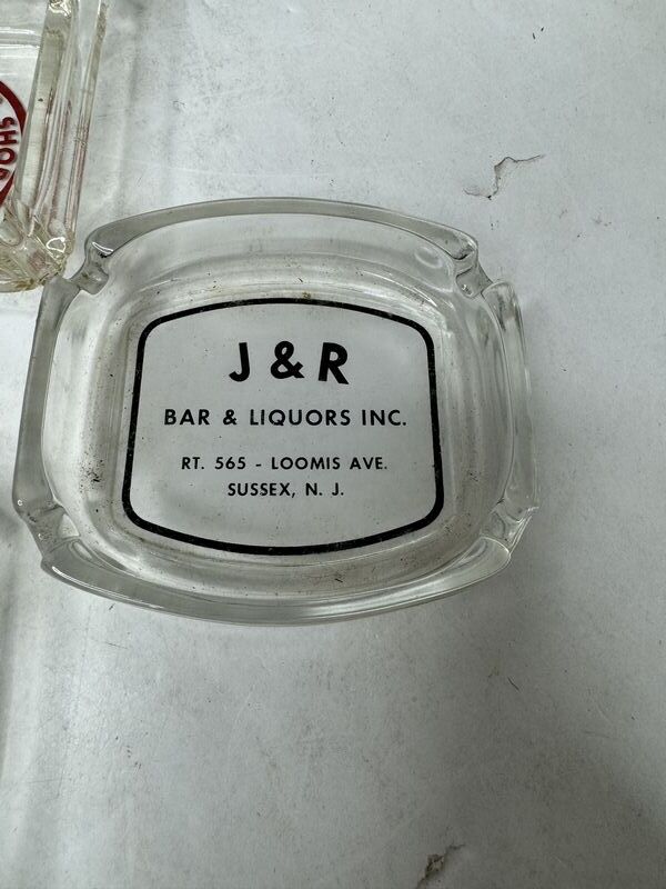 Sussex, New Jersey, J & R bar and liquors, ashtrays and wantage liquor shop ashtray. See photos sold as is.