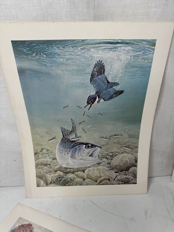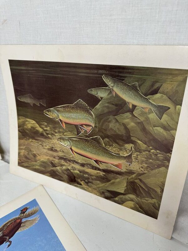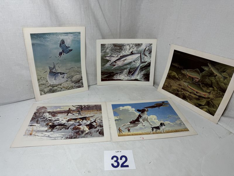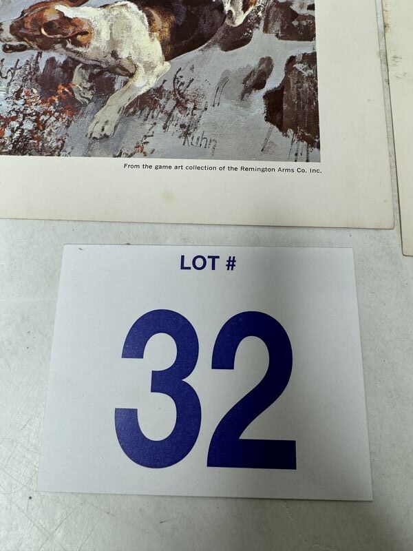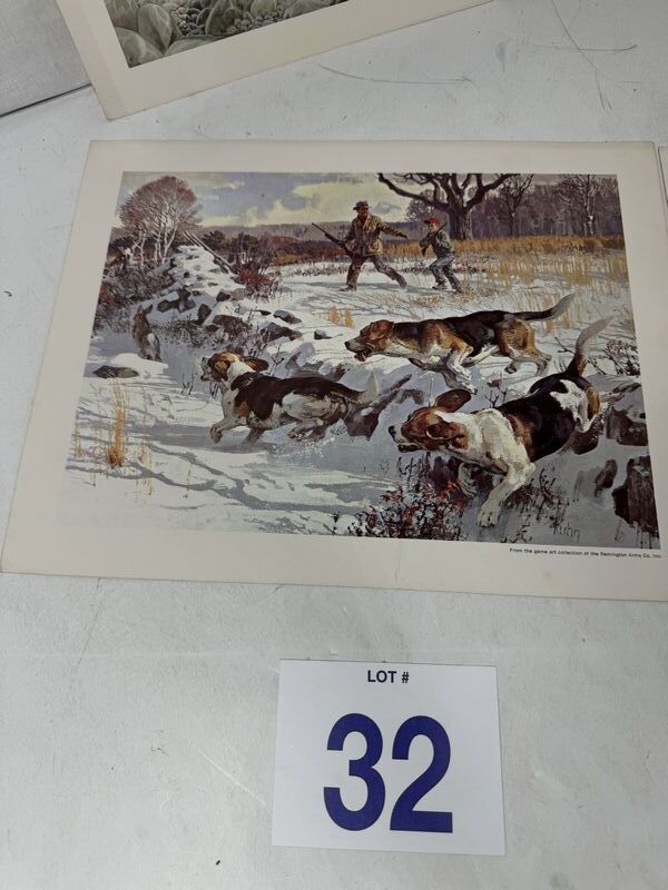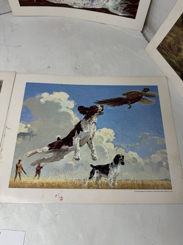 Various photos of hunting and fishing, the two dog photos are from Remington arms sold as is
