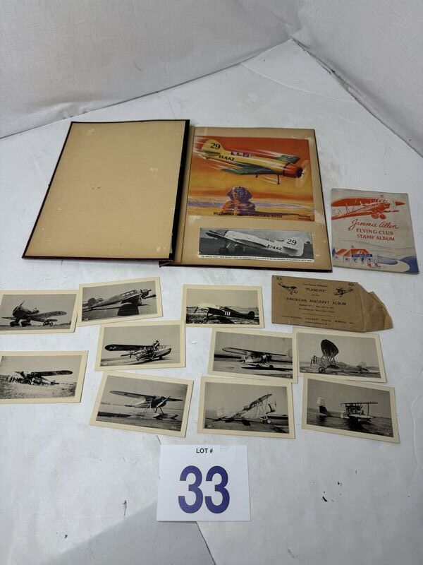 Airplane paper lot and photos some military, the Jimmy Allen flying stamp album see photos sold as is