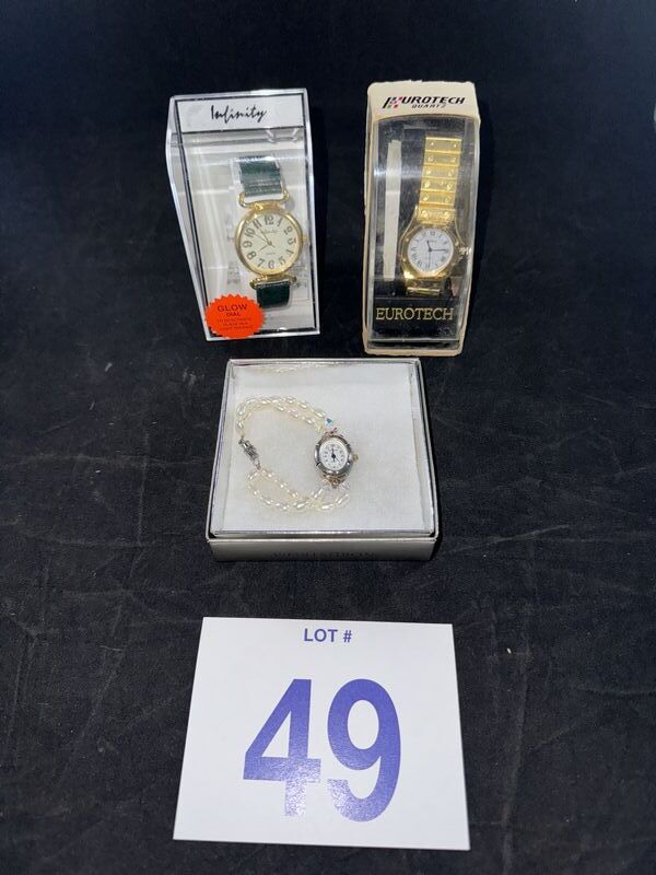 Two men’s watch one ladies watch Geneva brand, Unitron, infinity, all need battery sold as is