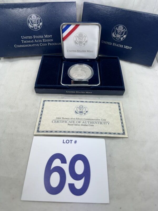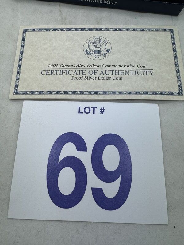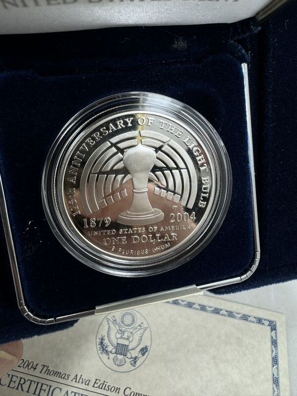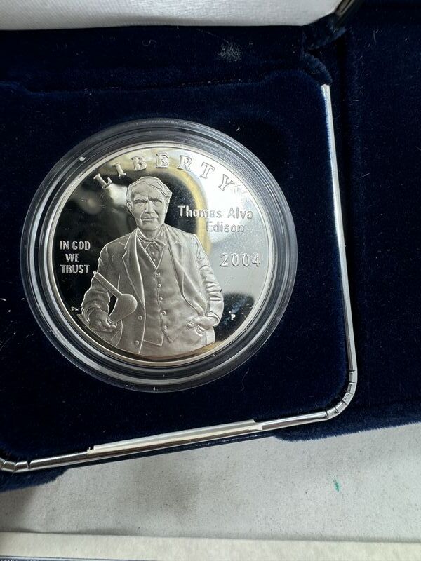 2004 Thomas Edison, silver mint coin with certificate of authenticity sold as is