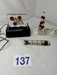 Mid-century lucite lamps. The black lamp is in working condition, the triangular lamp needs restoration. See photos for description sold as.