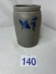 Antique 1-1/2 gallon crock has some cracks see photos sold as is