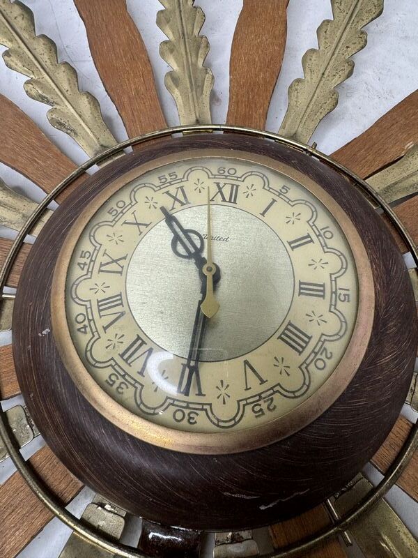 United Sunburst clock and working condition has been repaired at one time. See photos sold as is.
