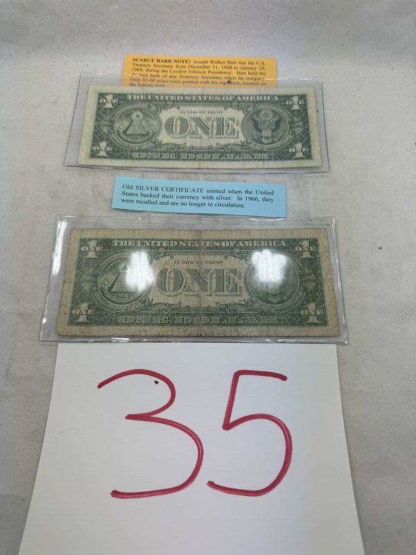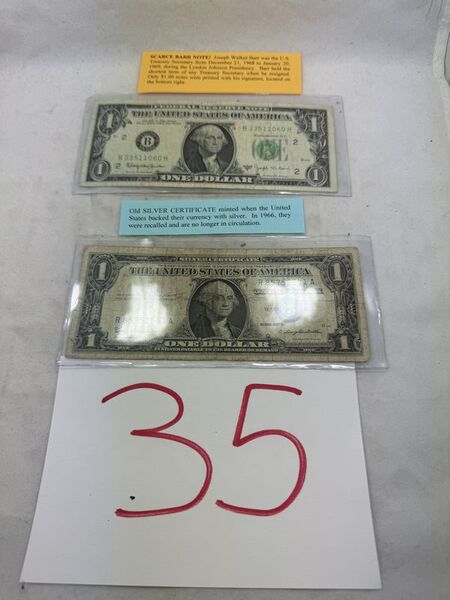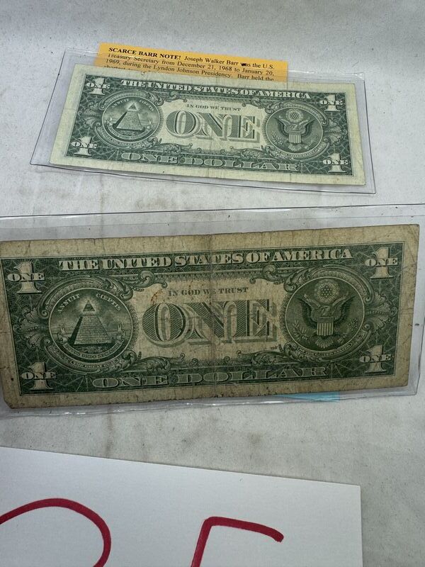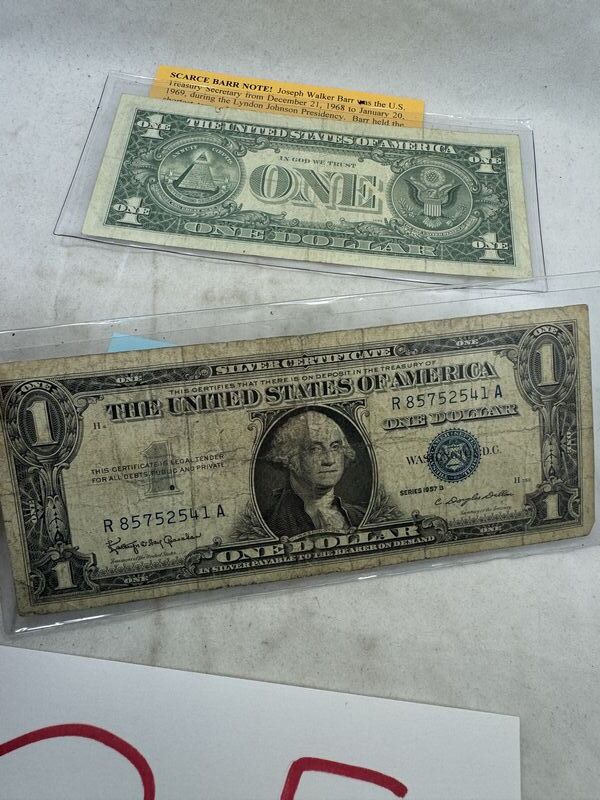 Scarce 1963B barr note and a 1957B silver certificate. See photos for description sold as is.