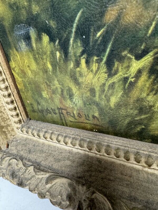 34 x 27” signed artwork. See photos for description sold as as.