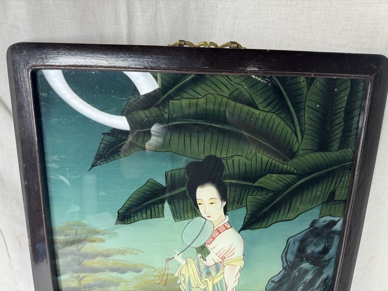 Chinese reverse glass painting, no chips or cracks 17” x 22” see photos for condition sold as is