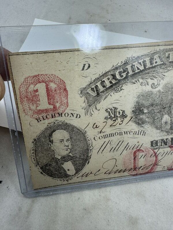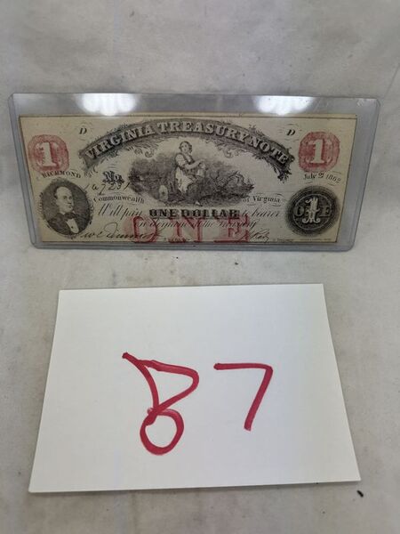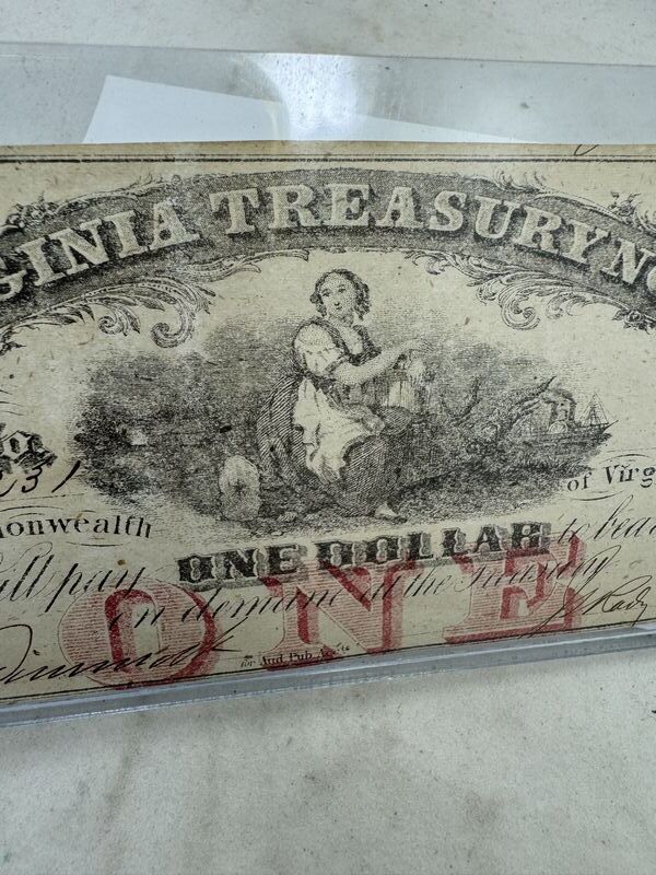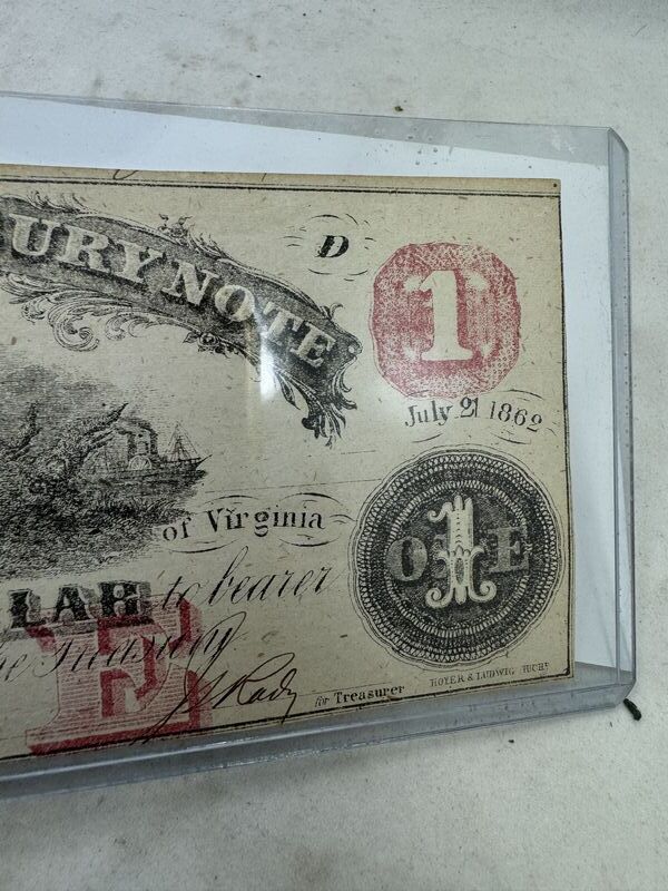 Authentic Virginia treasury one dollar note July 21, 1862. See photos for condition sold as is.
