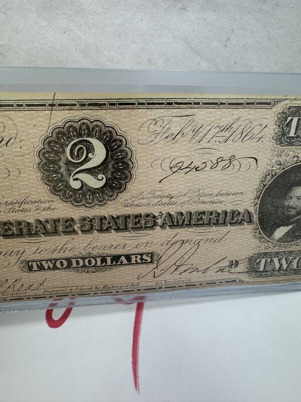 Authentic confederate states of America, two dollar bill see photos for description sold as as