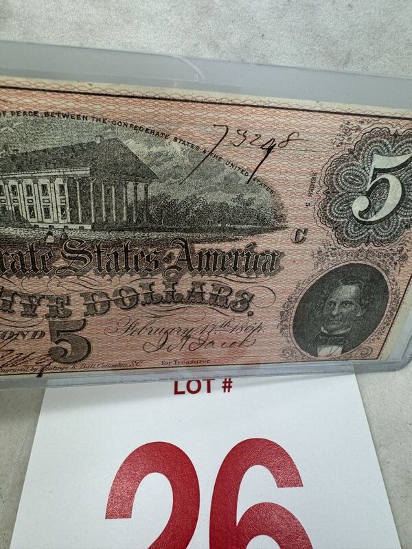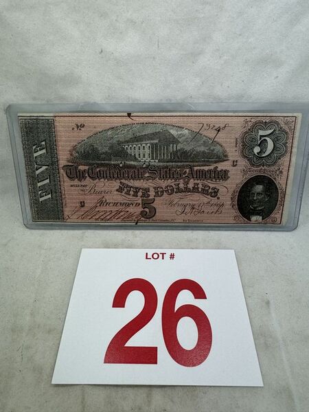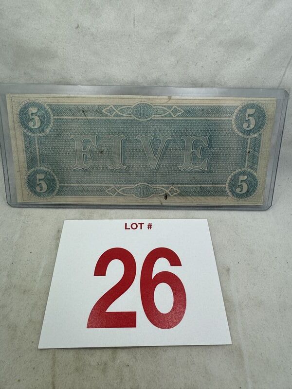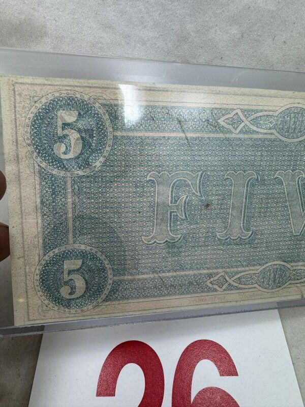 Richmond confederate states of America, five dollars note see photos for description sold as is
