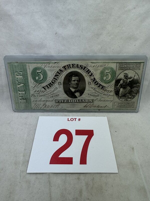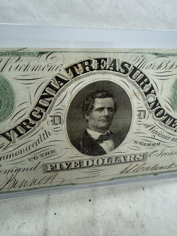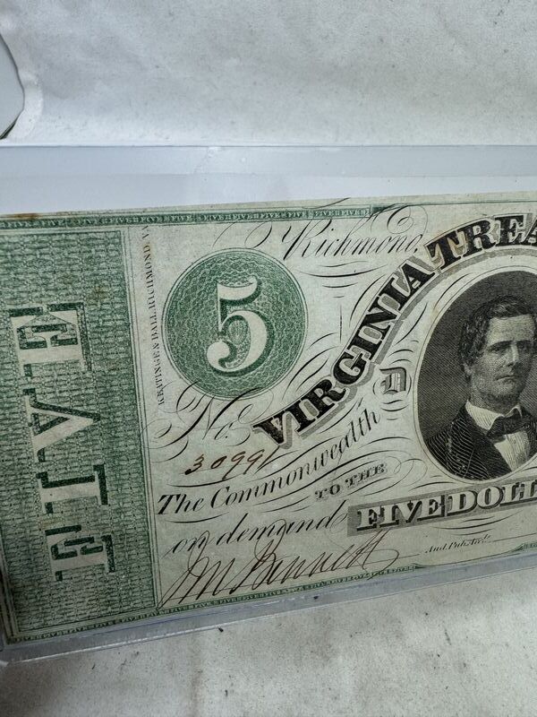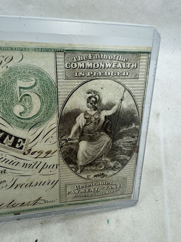 Virginia treasury note 5 dollars. See photos for description sold as is.