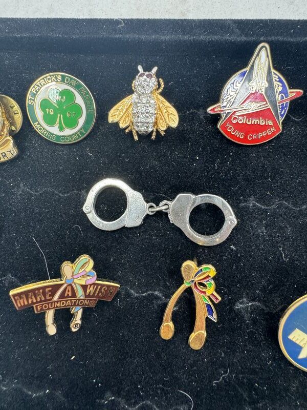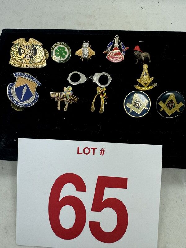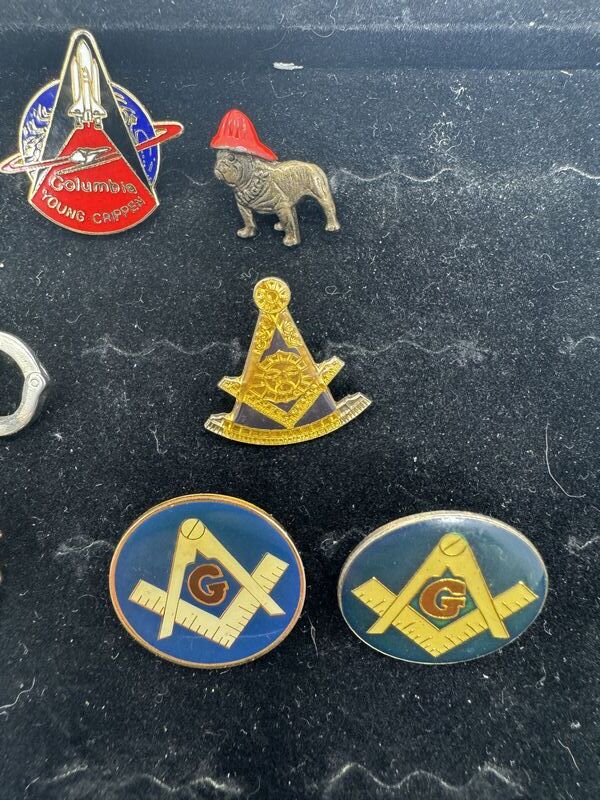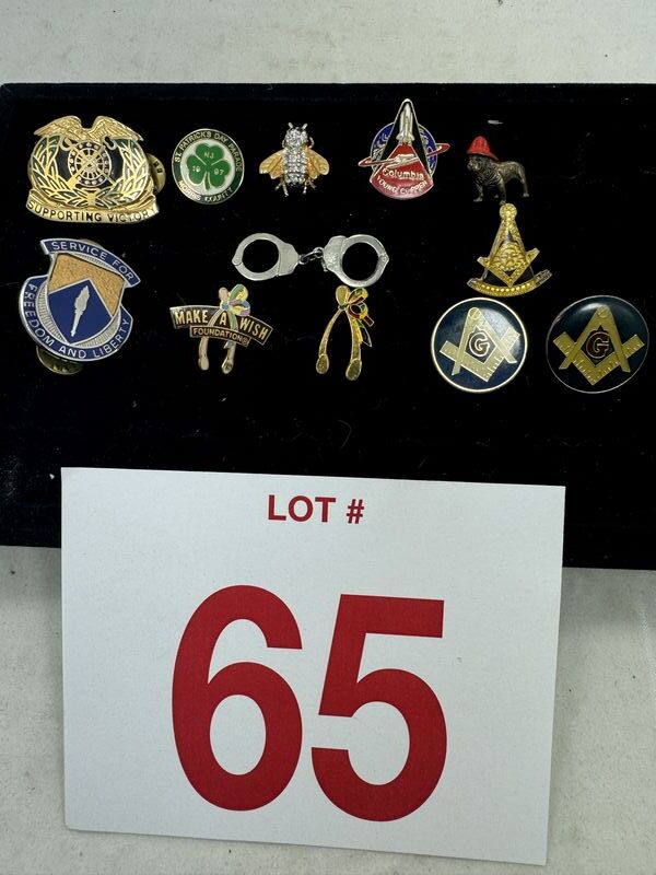 Masonic pins , Mack bulldog, US Army, handcuffed, and others see photos sold as as