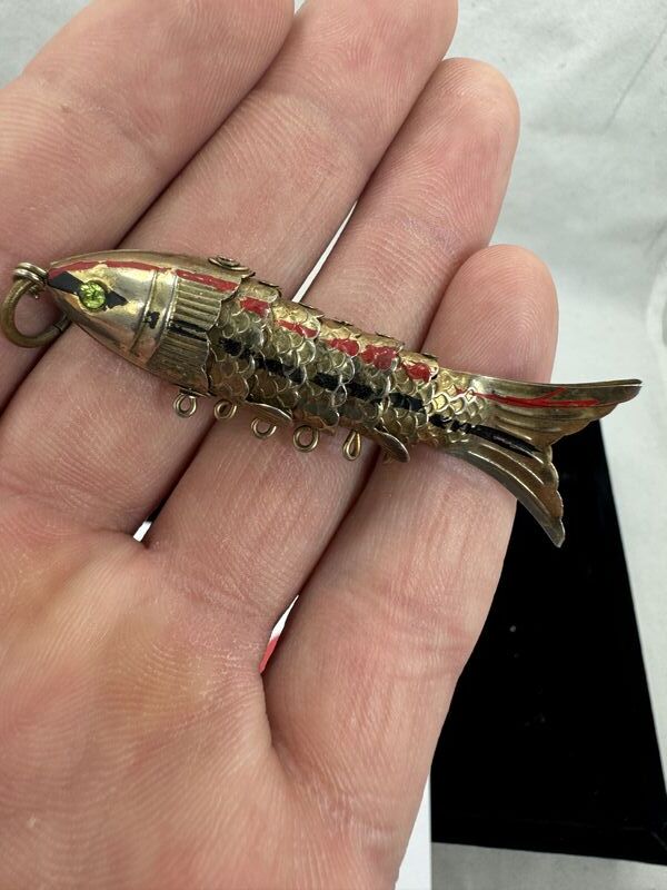 Unusual necklace charm Flexible possible emerald eyes. See photos for description sold as is