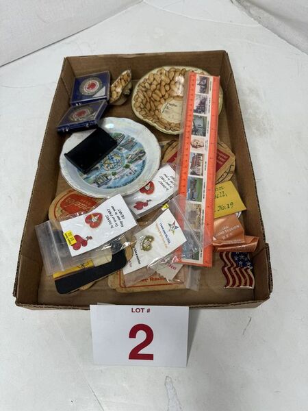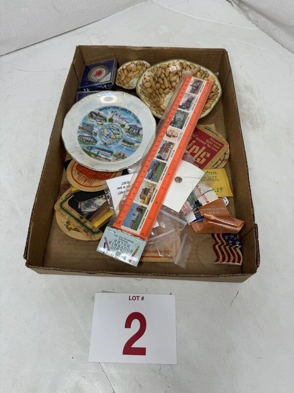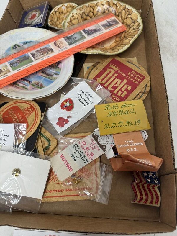 World's fair items, masonic items, vintage beer coasters, match safe, some advertising see photos sold as is