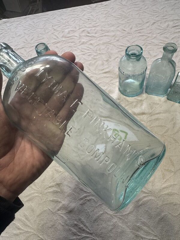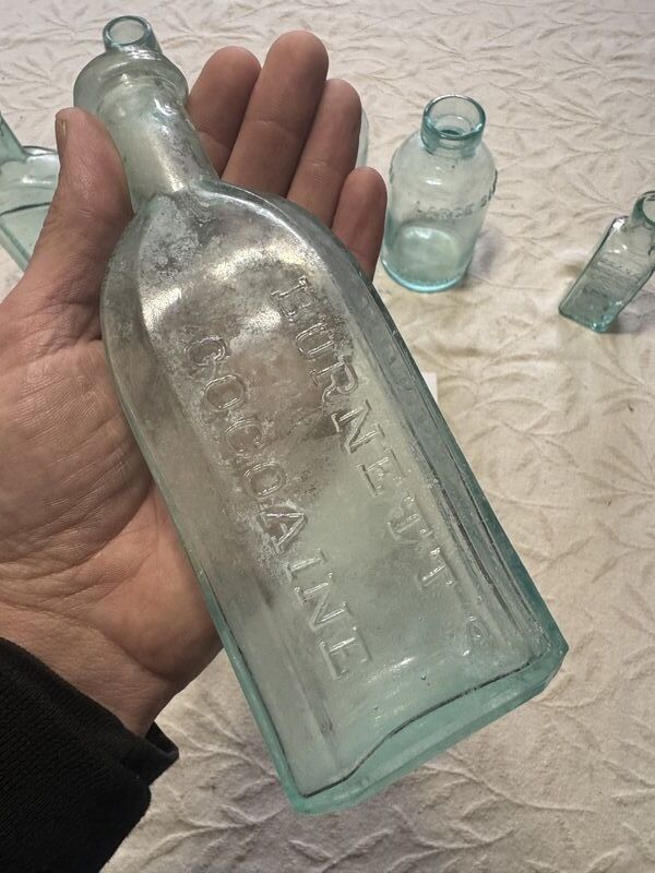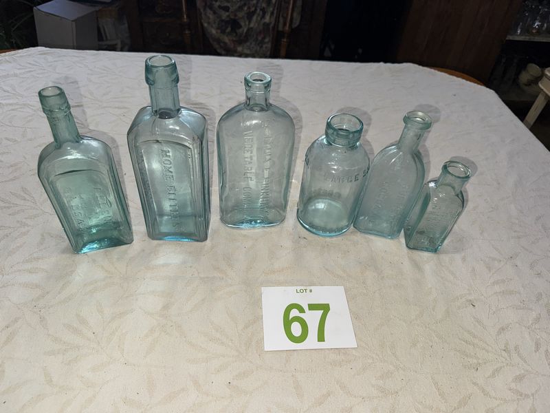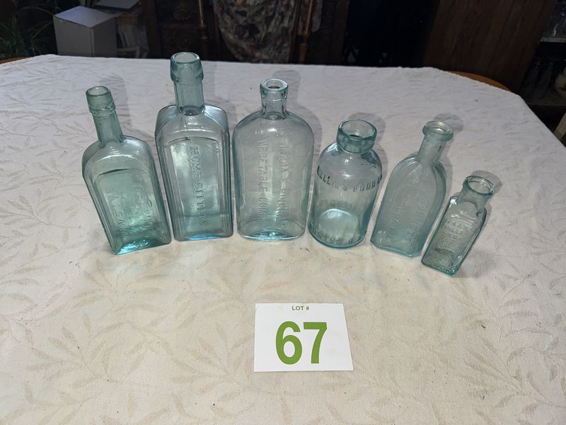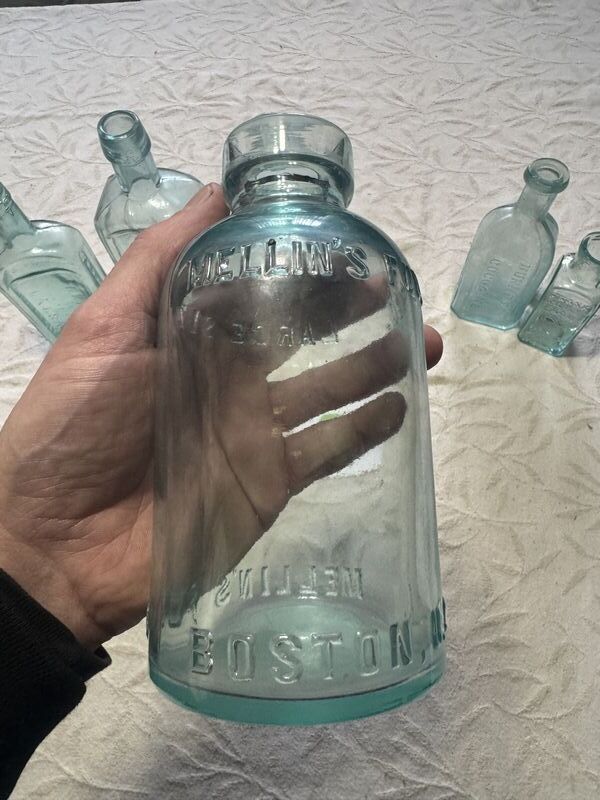 Mellin's food co, Franks miller crown, allen's lung Balsam, home Bitters, Burnetts cocoacaine, vegatable compound, no chips or cracks, see photos, sold as is.