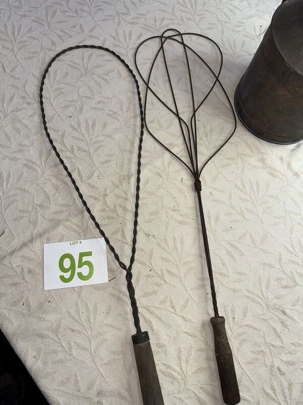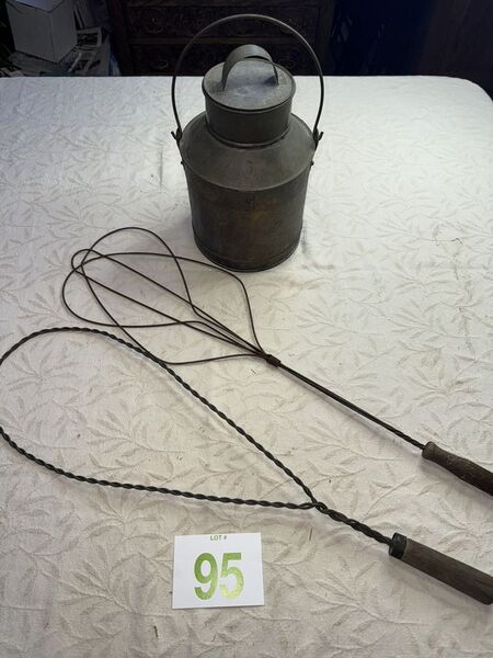2 rug beaters, 1 copper jug, see photos, sold as is