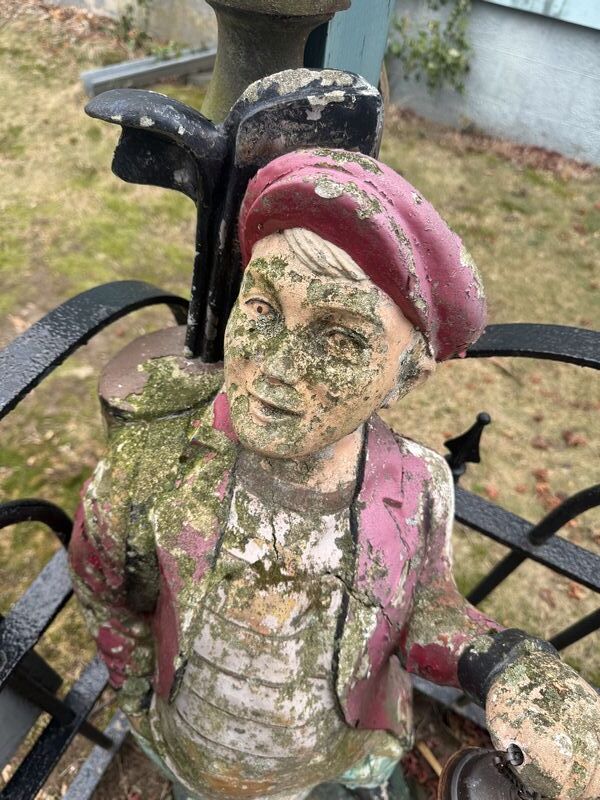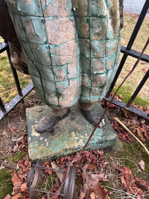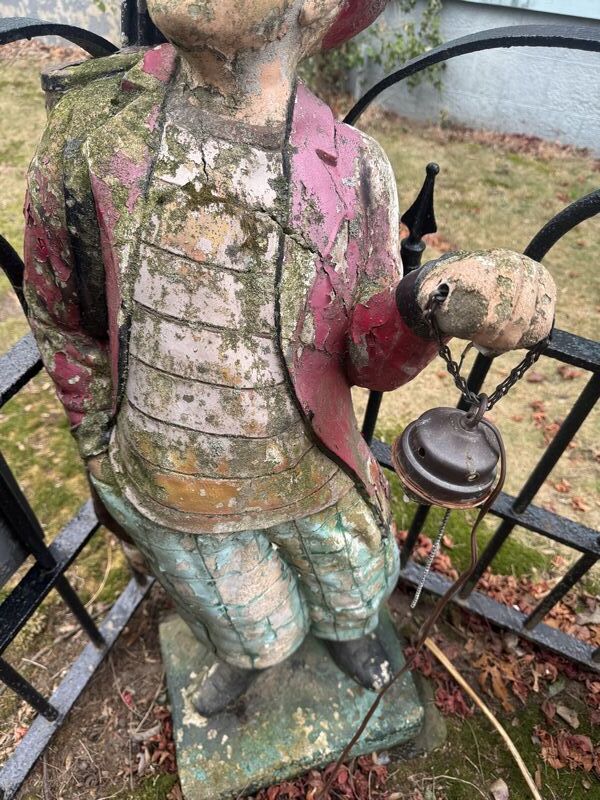 48" tall Made of concrete, has cracks, and needs restoration. See photos, sold as is.