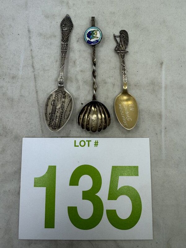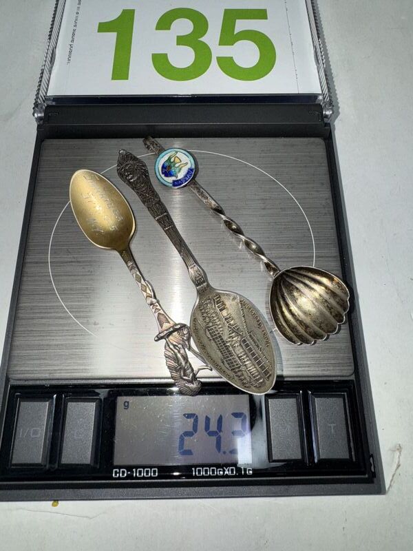 3 sterling silver souvenir spoons, 24 grams, see photos, sold as is.