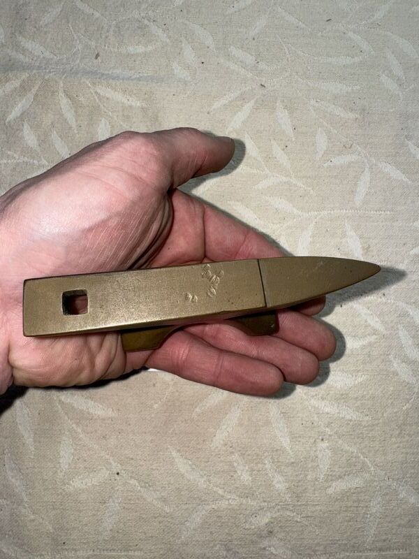 4.5" by 2.5" shows signs of use. Nicks, scratches etc. See photos sold as is