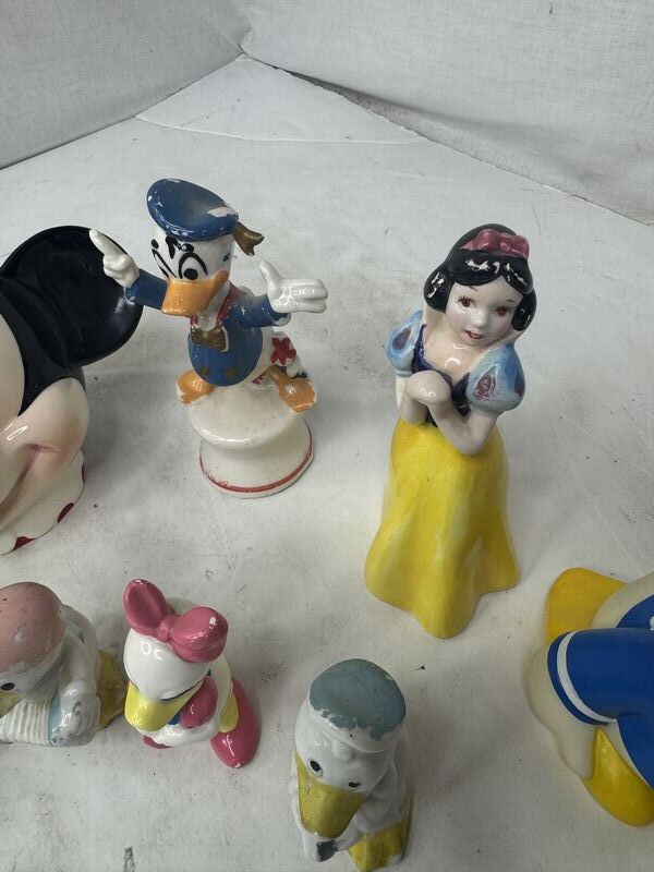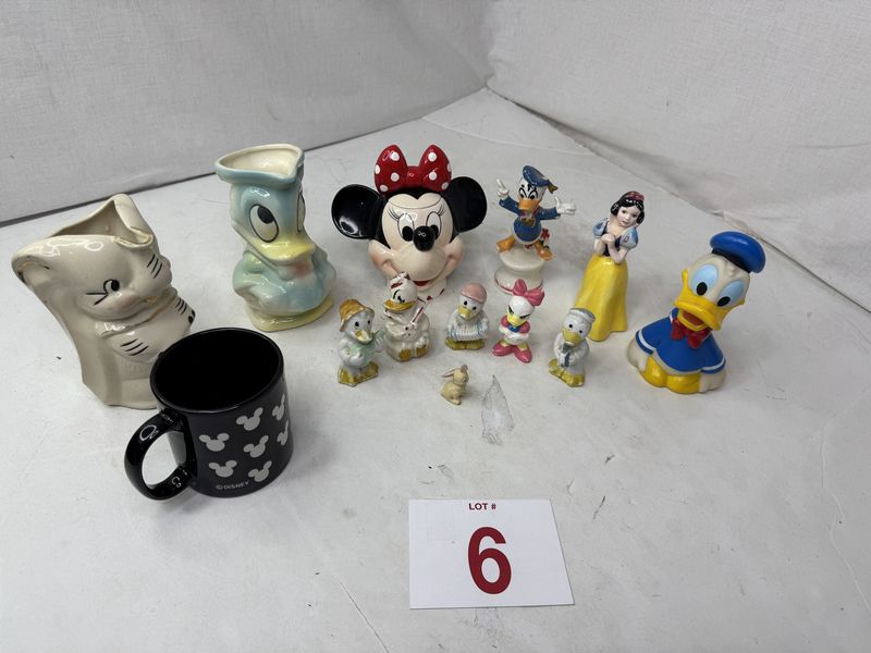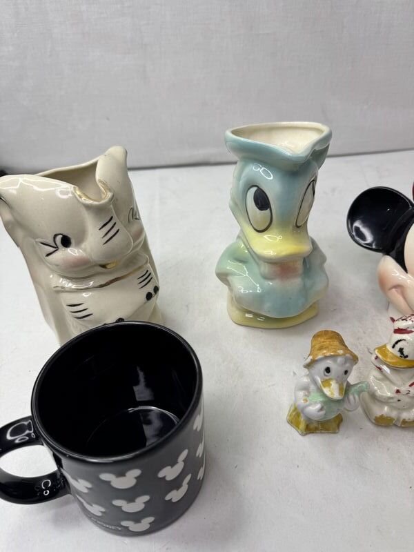 Donald duck bank, Dumbo creamer, Donald duck creamer , Minnie mouse sugar jar, see photos sold as is.