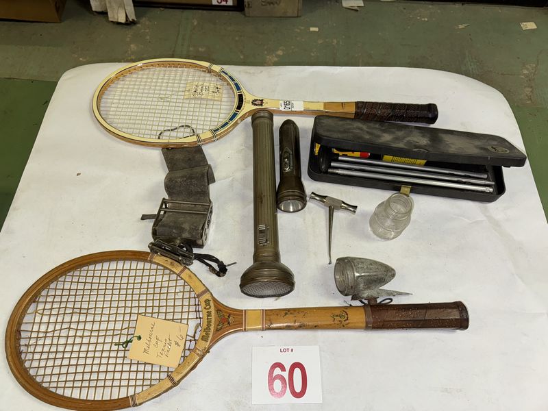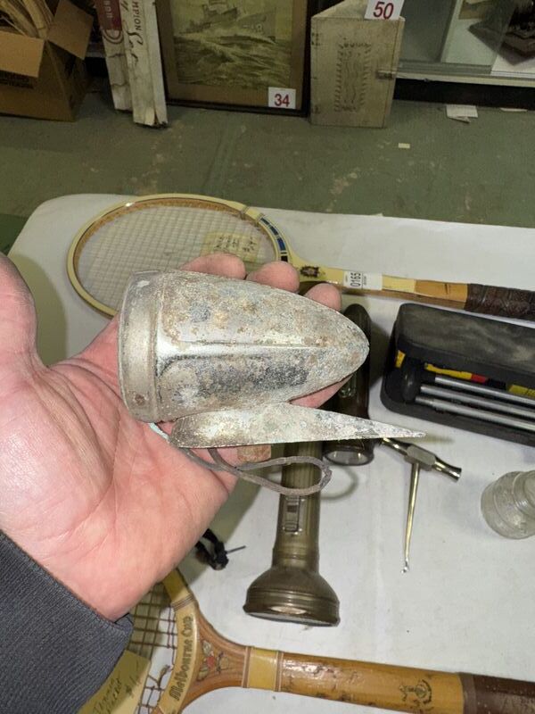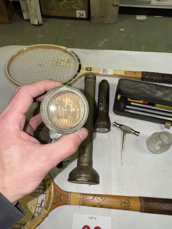 Box lot of Collectibles Schwinn headlight, other outdoor sport items, see photos, sold as is.