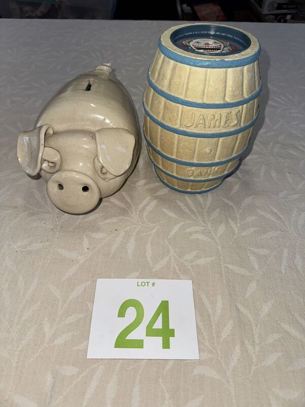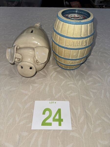 JAMES CANDY SALT WATER TAFFY BARREL BANK PAPER MACHE 7” ATLANTIC CITY USA, Ceramic Piggy bank no chips or cracks, see photos, sold as is.