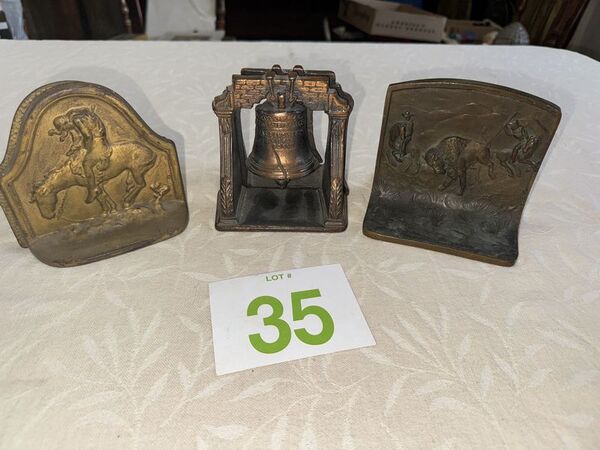 Solid Bronze Hunting buffalo, Brass Liberty Bell, Brass The Last trail, See photos, sold as is