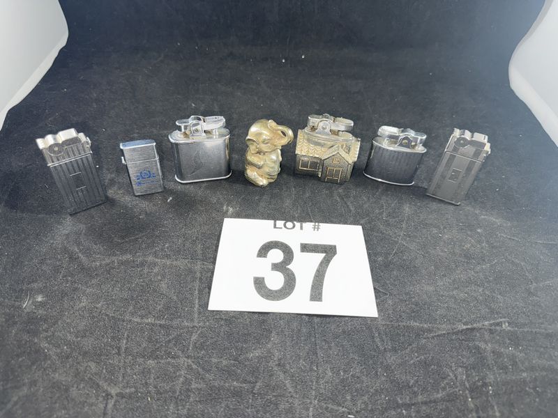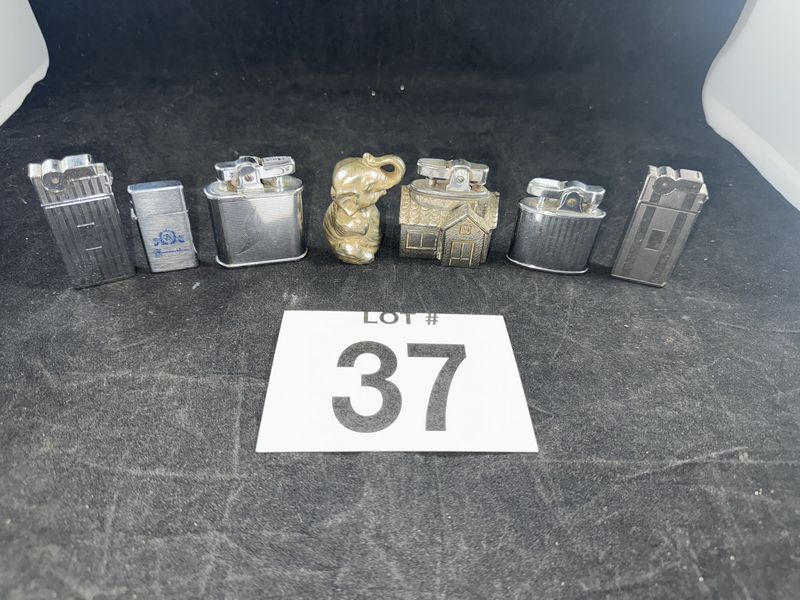 2 Ronson, 2 A.S.R. , Barlow, the figural lighters are unknown, All for restoration, see photos, sold as is