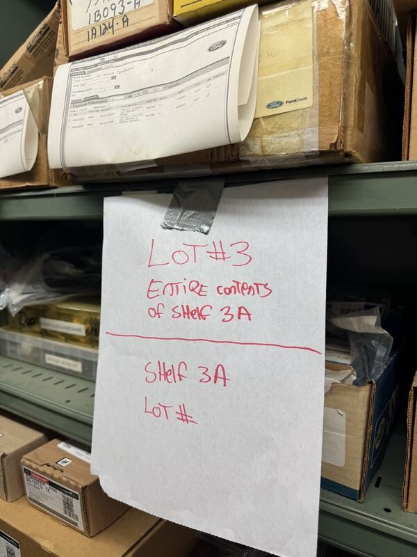 Entire contents of ford parts shelf 3A, door and lock, hardware, rattle, noise, kit, nuts, and studs, brake, linings, brake rotors and more