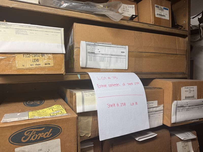 Entire contents shelf 25A ford parts headlamps, wiper motor kits mirrors, lens, housing and more