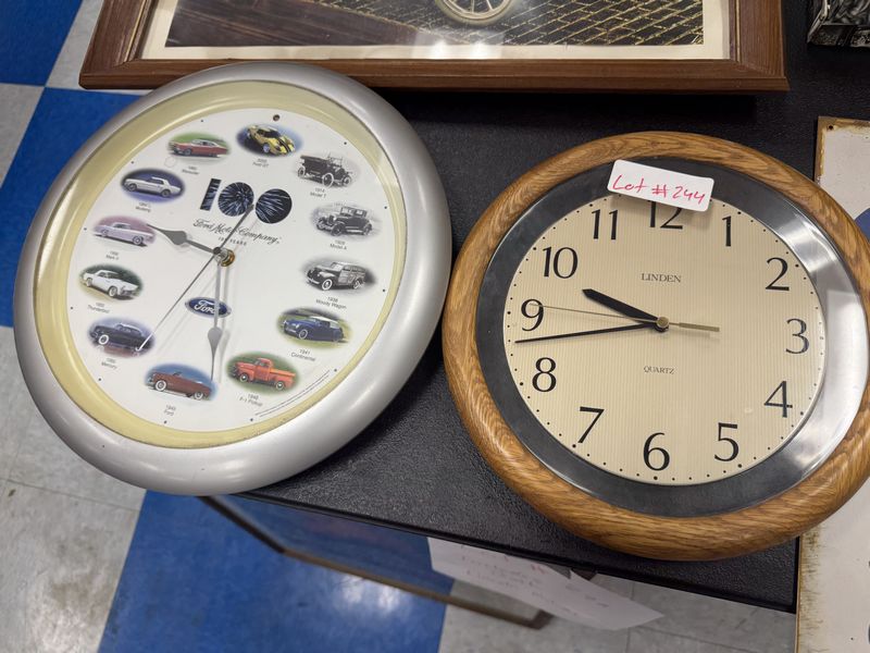 One ford company hundred years of cars clock and one Linden house clock two clocks one money