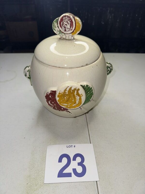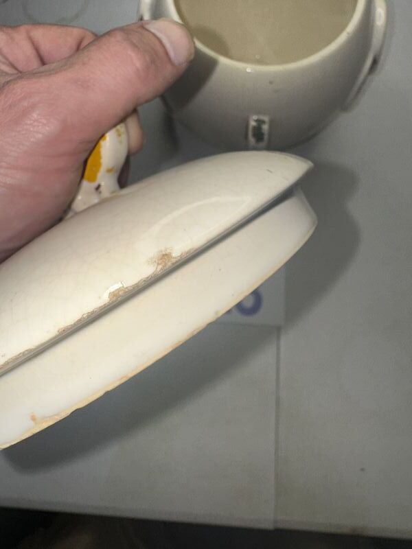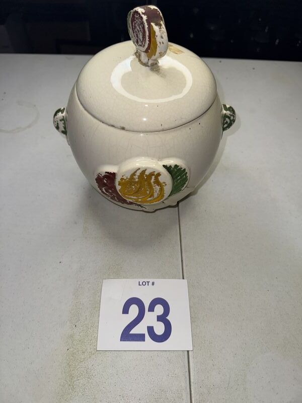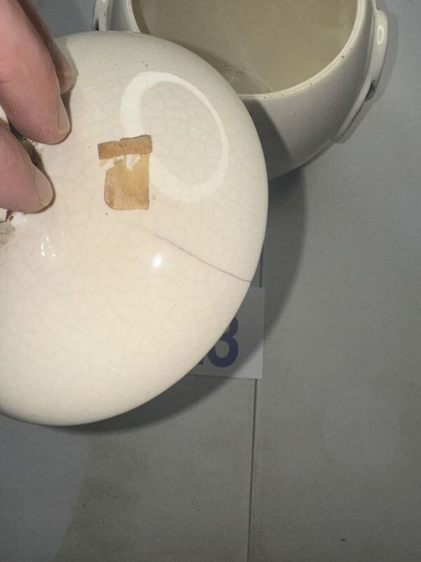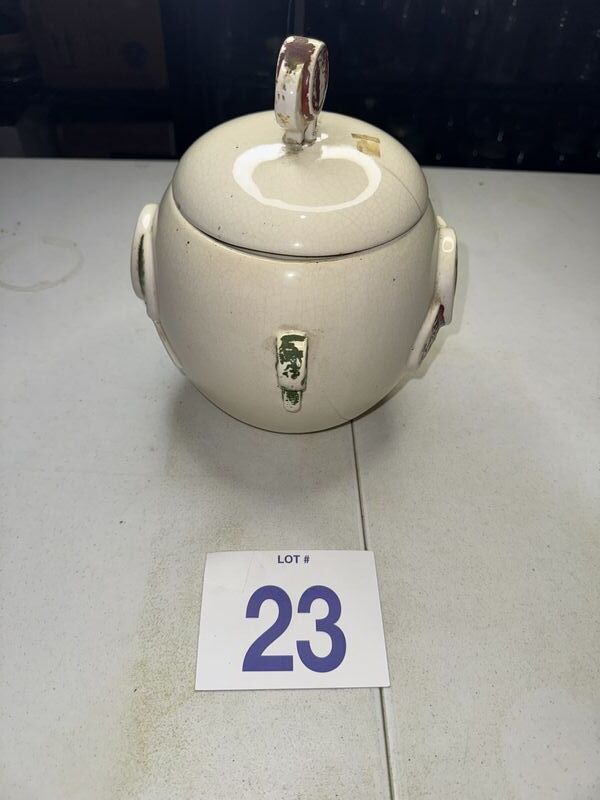 Has one crack on lid and small chips on lid, some craving sea photos sold as is