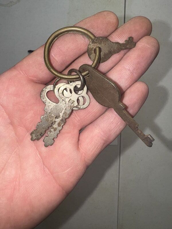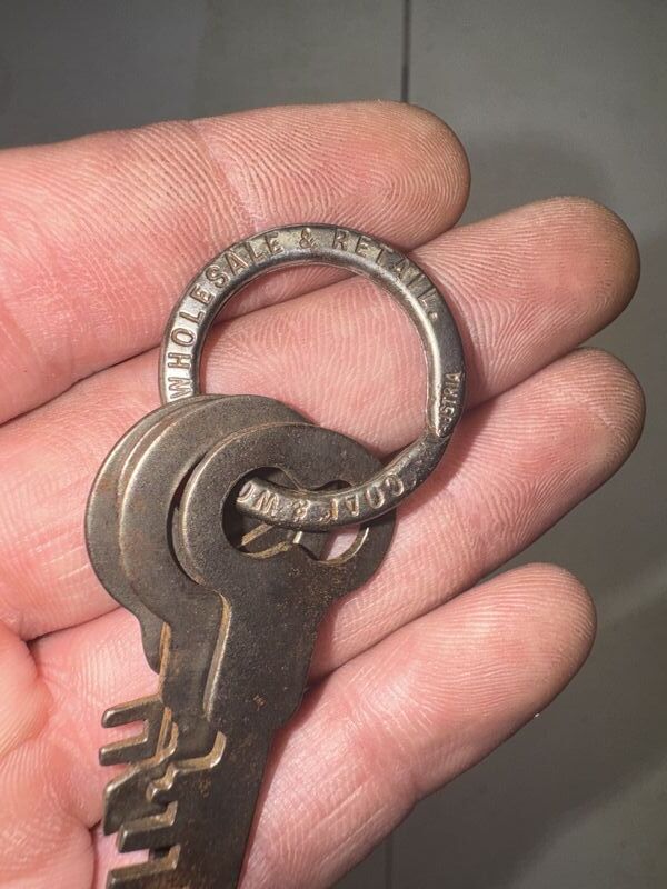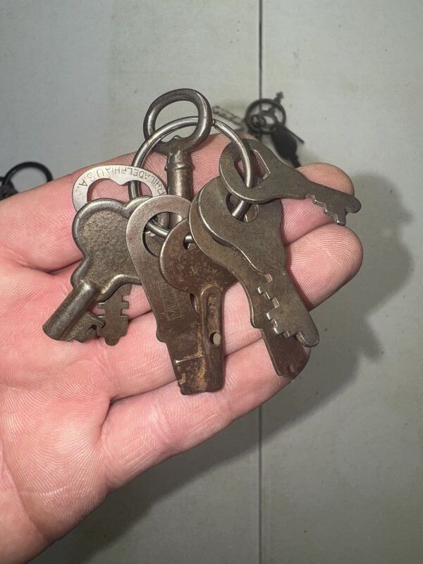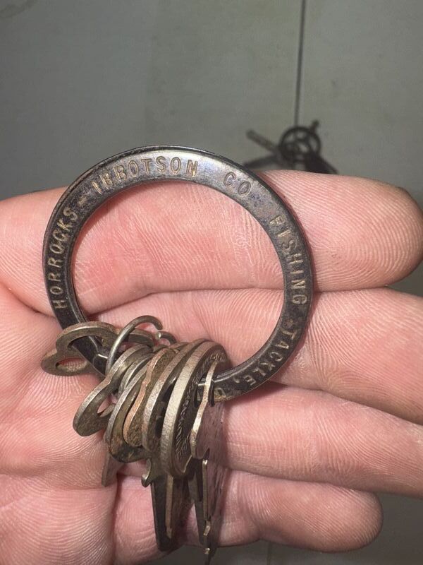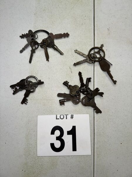 25 keys total, two key rings have advertising on them. See photos sold as is.