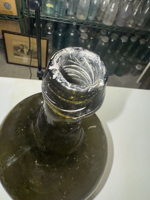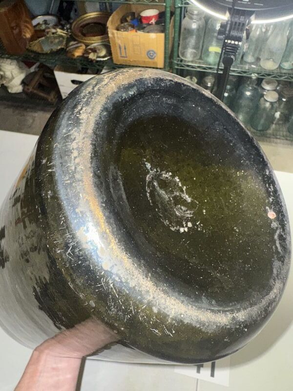 Unmarked, small chips on top no cracks factory bubbles in the glass needs a cleaning. See photos sold as is.