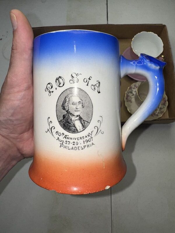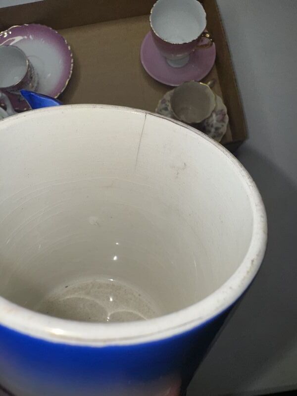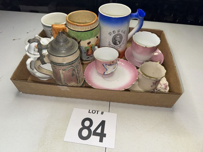 No chips or cracks on the Steins or mugs the POS of a mug has some chips and cracks. See photos sold as is.