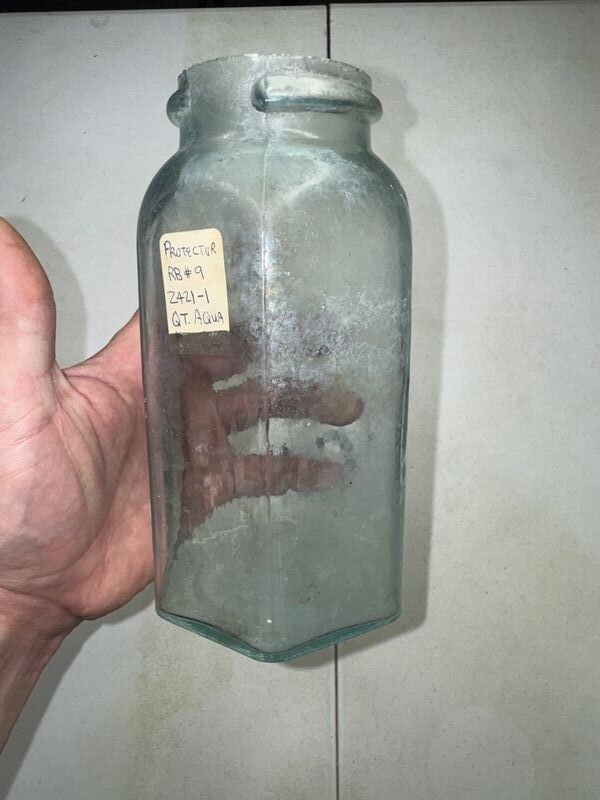 Rare protector 1 quart canning jar no chips or cracks. Needs a cleaning missing lid. See photos sold as is.
