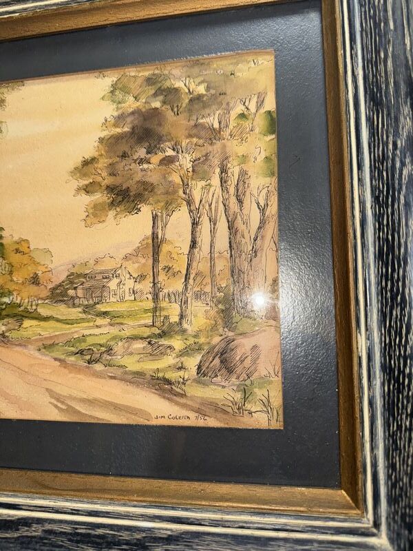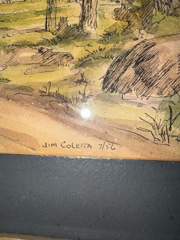 Jim coletta signed watercolor, listed American Artist. 17” x 14” C photos sold as is.