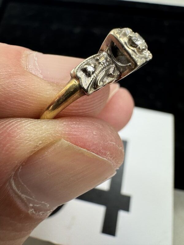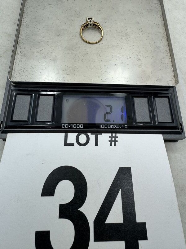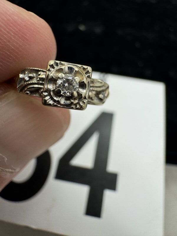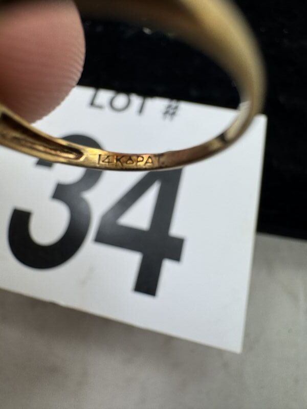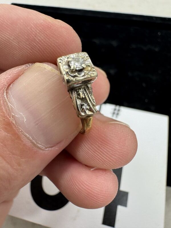 14 K gold ring, unknown gem possibly diamond 2.1 grams see photo sold as is