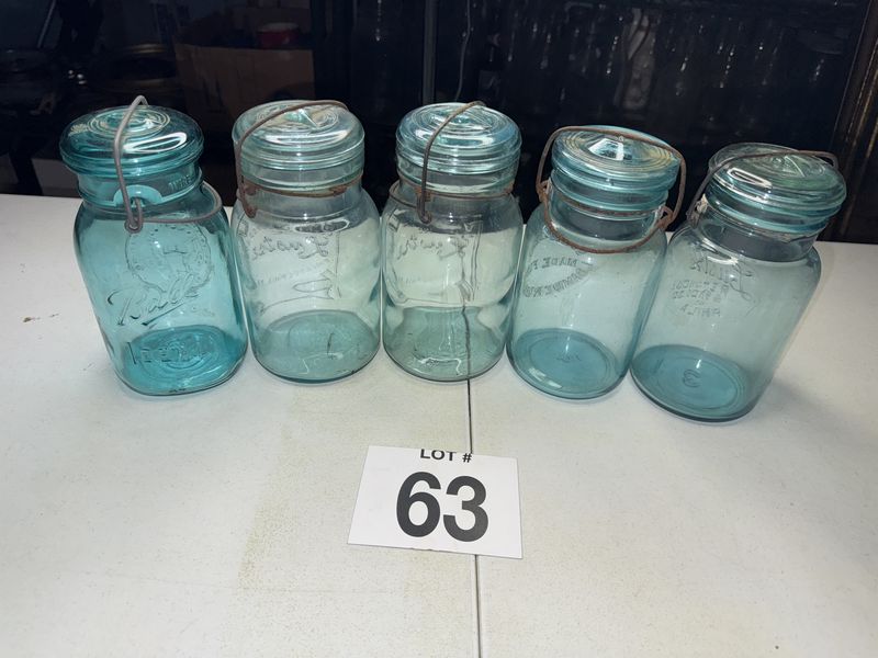 5 mason jars total ball ideal bicentennial, three lustre , Philadelphia, PA mason jars, and shore seal mason jar no chips or cracked see photos sold as is