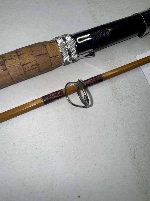 8 foot in length. Unused Ray Lyon bamboo fly rod, Matamoras PA one of a kind you won’t find another one like it. Beautifully handcrafted see photos sold as is.