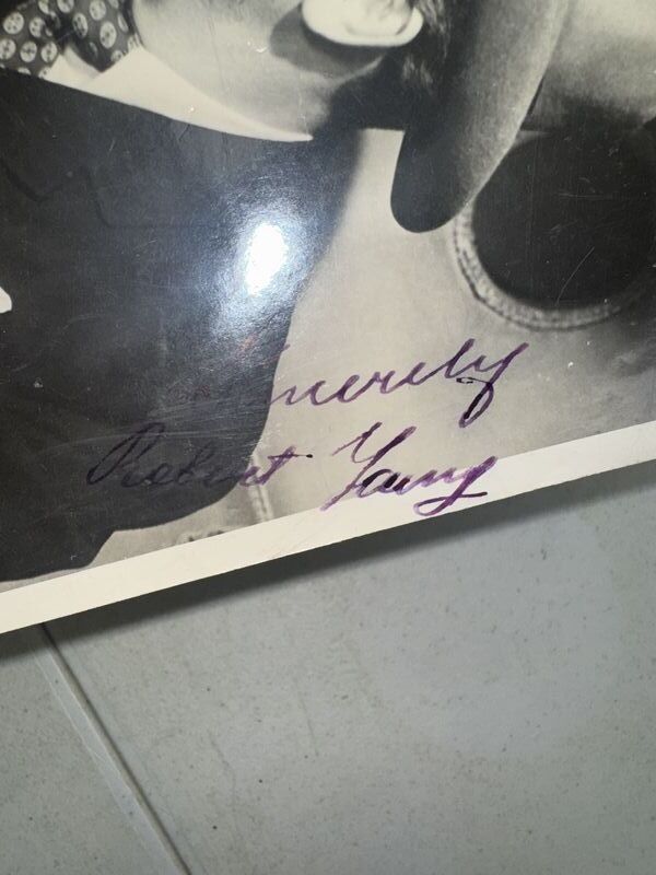 Robert Young signed photo, and 100 anniversary 1891 club celebration ribbons and pin back. See photos sold as is.