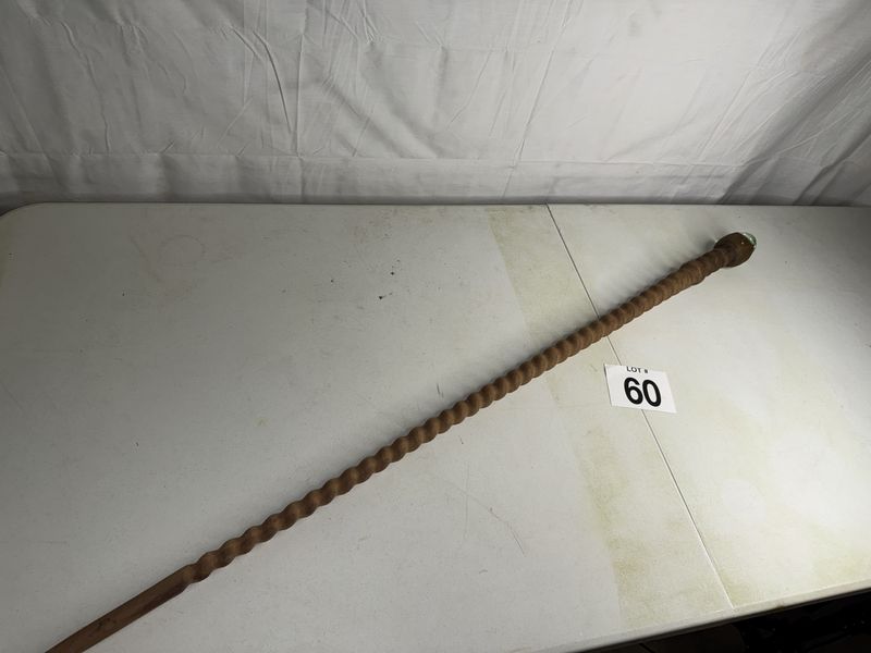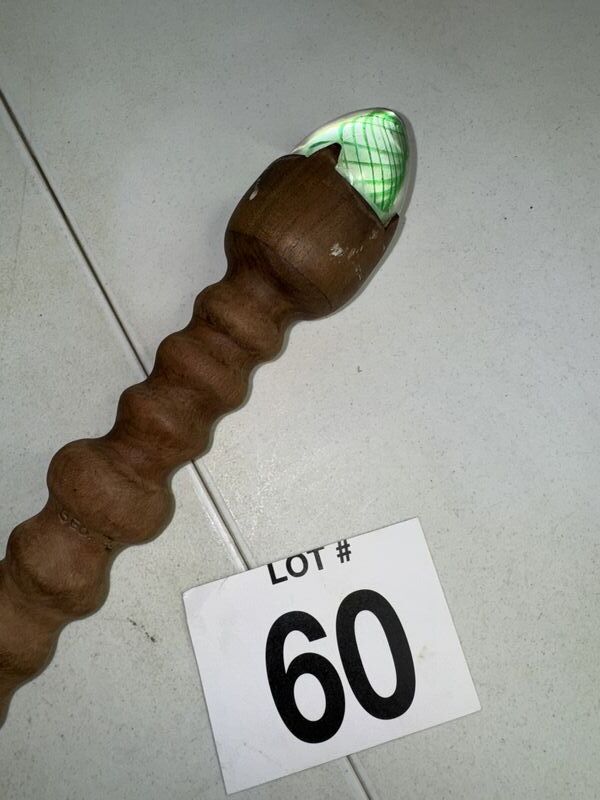 50 inches in length hand carved wood with egg shaped paper weight see photos sold as is