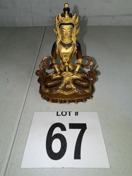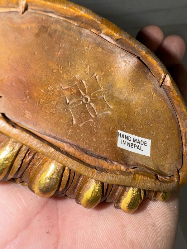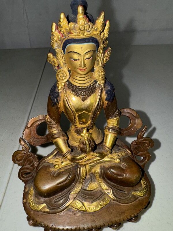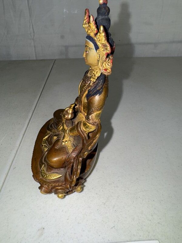 Eight and three-quarter inch tall bronze statue made in Nepal. See photos for description sold as is.