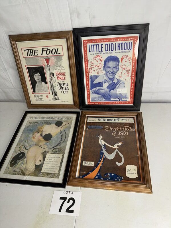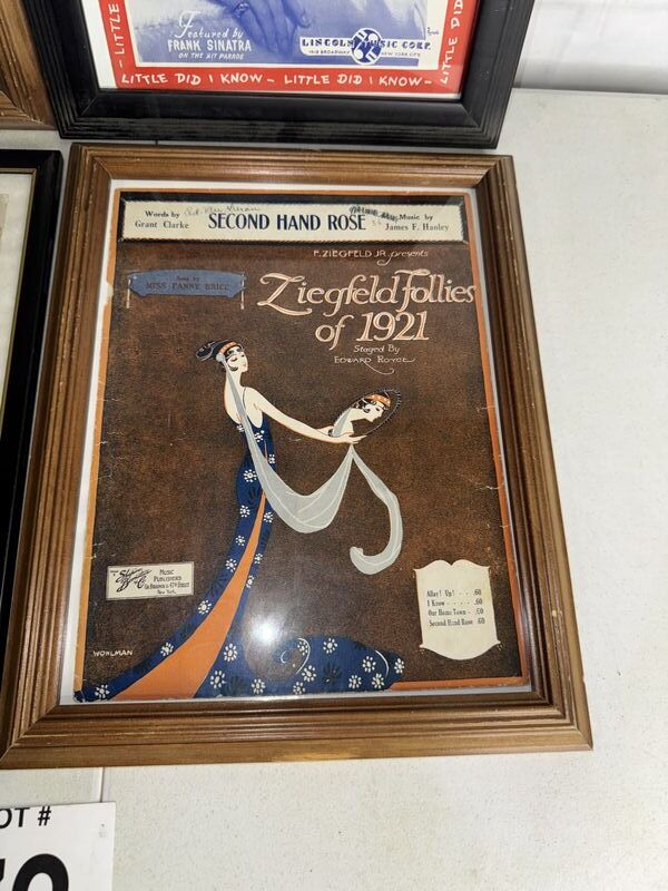 For individual framed music sheet sheets, one frame has a cracked glass. See photos sold as is.