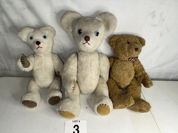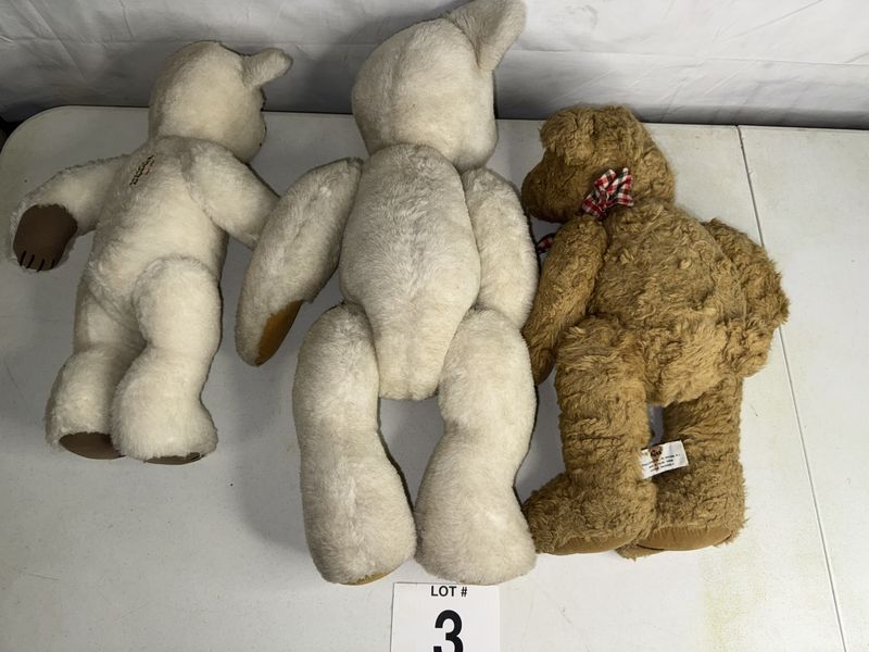 Two bears are 20 inches, one bear is 25 inches See photos for description sold as is
