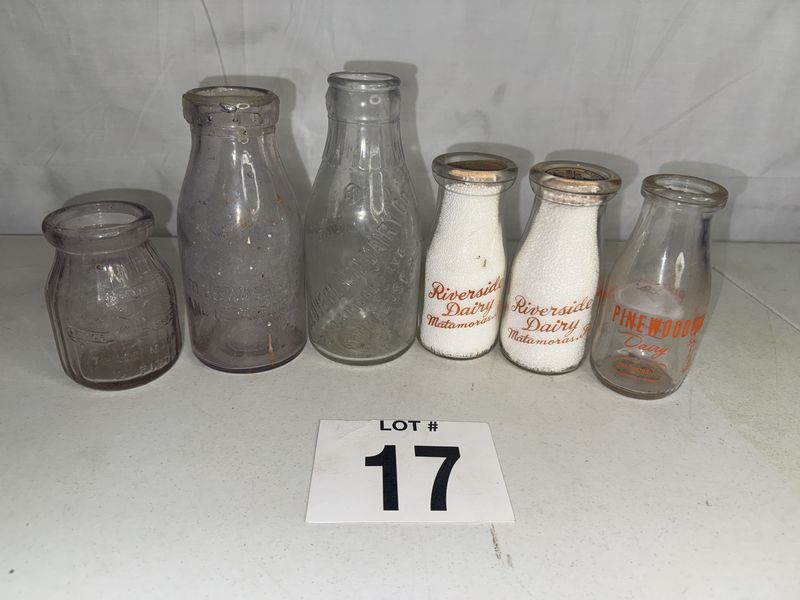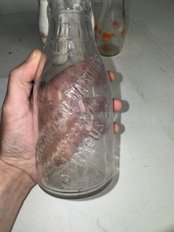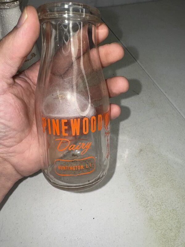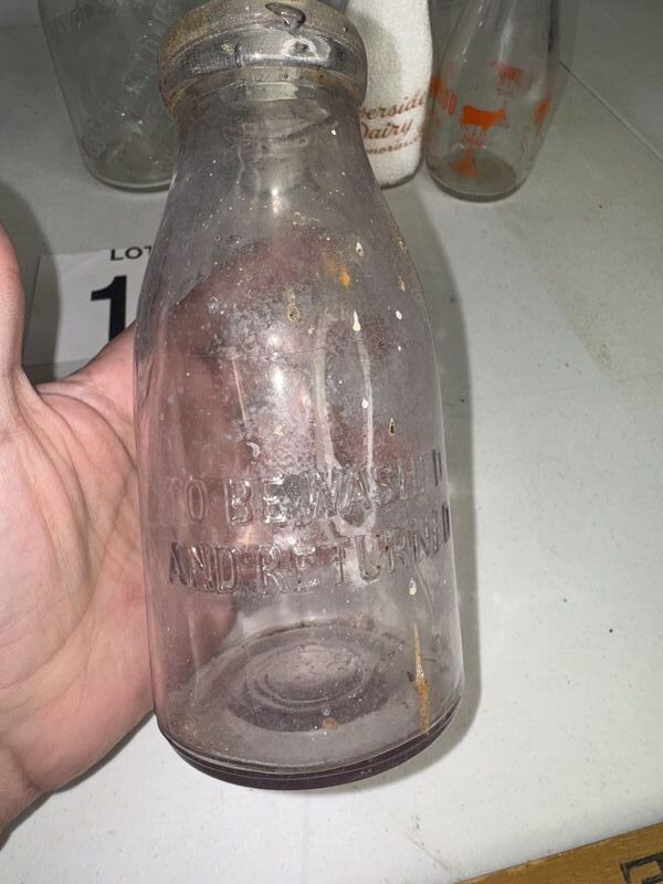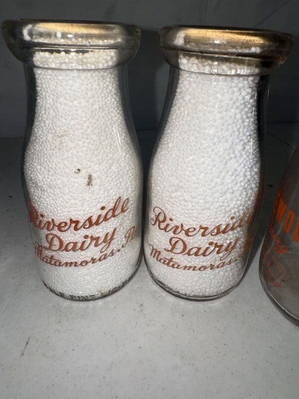 Two – Riverside dairy Matamoras, PA bottles, Pinewood dairy Huntington, Long Island, Cloverland dairy Syracuse, New York, store returnable bottle and one eagle brand trademark bottle no chips or cracks. Needs the cleaning. See photos for description sold as.