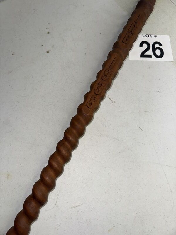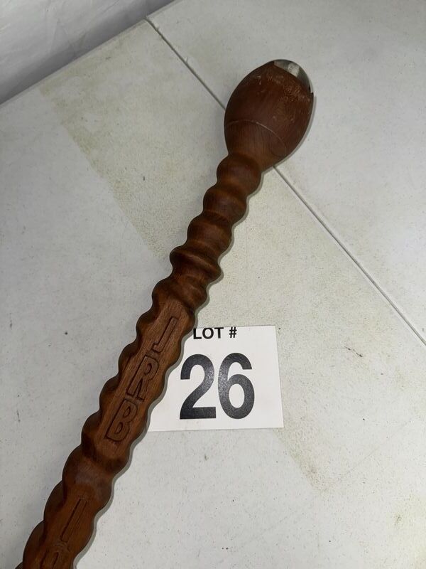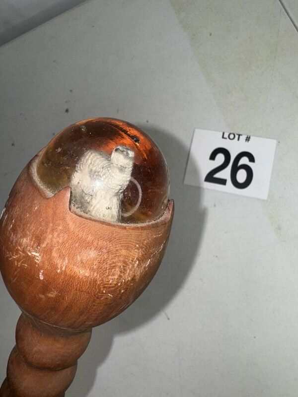 1 1/2 inch circumference sulfide marble glows under a black light. Hand carved walking stick 55 inches in length. See photos for description sold as is.