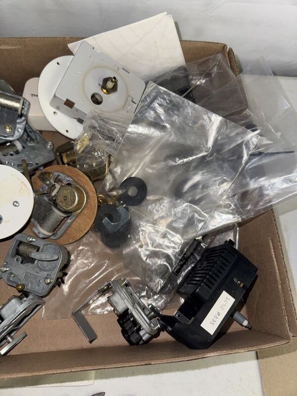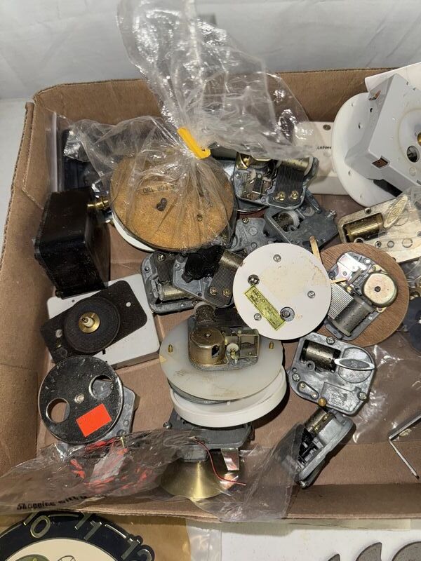 Clock parts and music boxes see photos sold as is