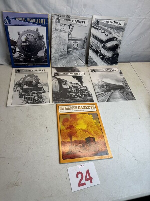 6 central headlight magazines, and one narrow gauge and short line gazette see photos for description sold as is